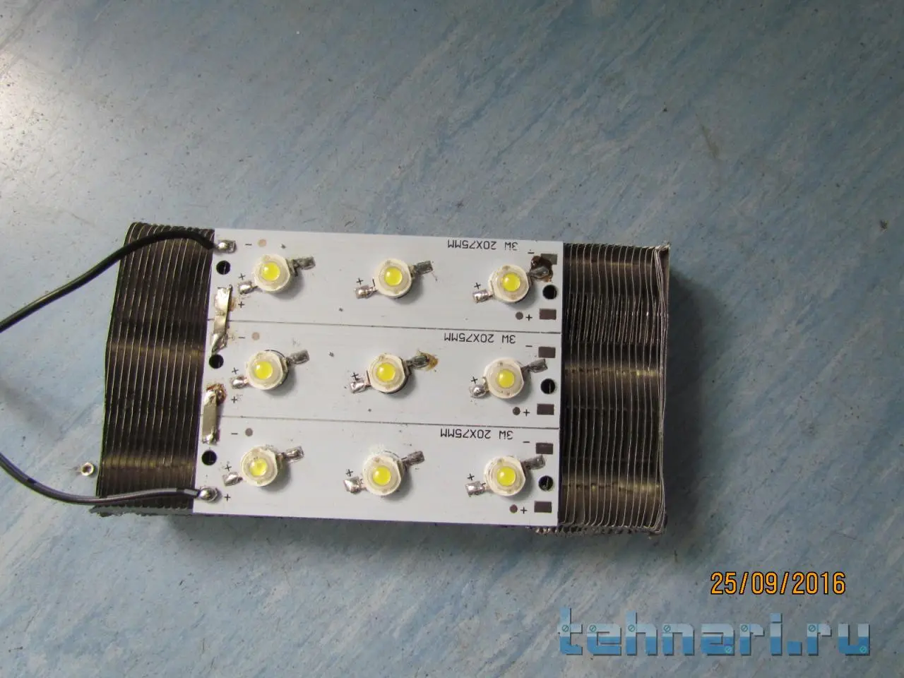 Разбираем старый кондиционер в нем два конденсатора толщиной 2,2 см .Пилим нужный размер и клеим на теплопроводный клей. 12 ватт что на фото греется до 42 градусов .