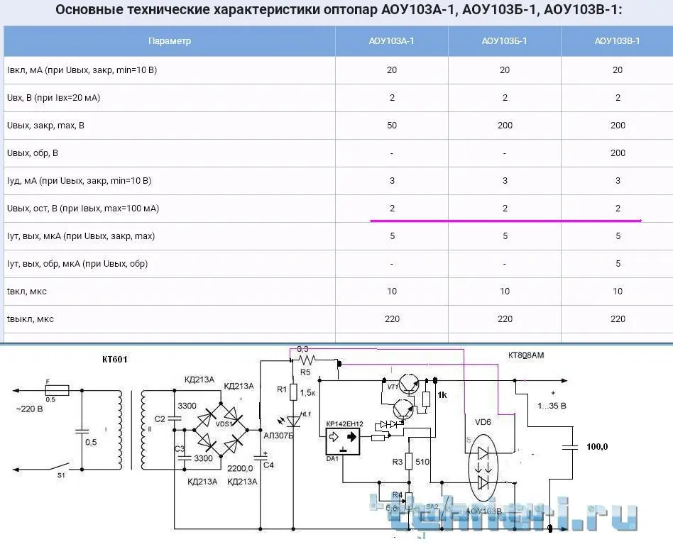 При подборке компонентов, попались из старых, АОУ103В -5 штук и все ‘живые’.