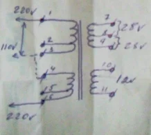 Решил постепенно полность заменить всю начинку на новые схемы. Сегодня купил трансформатор. Транс из американской системы навигации. отдал 600р. Схему питания переделаю с защитой дополнительной. Есть может че получше? Схема прилагается (схема питания). Схема транса также прилагается. Там две обмотки по 28в и одна по 12 в.