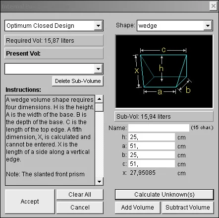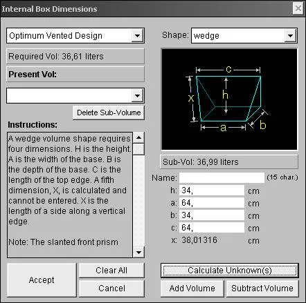 При помощи JBL SpeakerShop например, вот два варианта по быстрому накидал тебе, в ЗЯ и ФИ исполнении. да еще, взял чуть больше объем +2л, с учетом что погрузится голова еще, эт норм будет :)