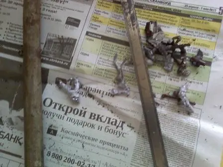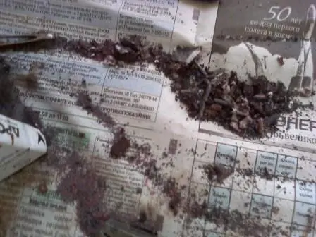 утрамбованный черно-серый порошок, сульфат свинца, по консистенции как почва; между ними какая-то непрочная белая субстанция. И куча металлических пластин.