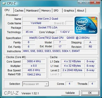 Процессор Intel Core 2 Quad Q8400 2.66GHz 1333MHz 4Mb LGA775 на матплате Asrock P45TS Socket775. пробовал разгонять с помощью утилиты OC Tuner но работает не стабильно, то сразу выключается, то через пару минут перезагрузка идёт.