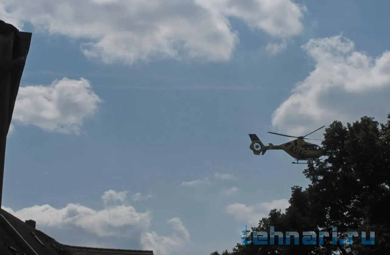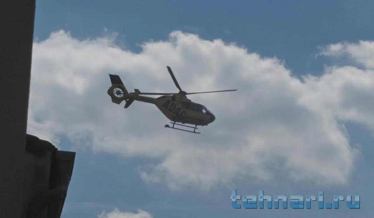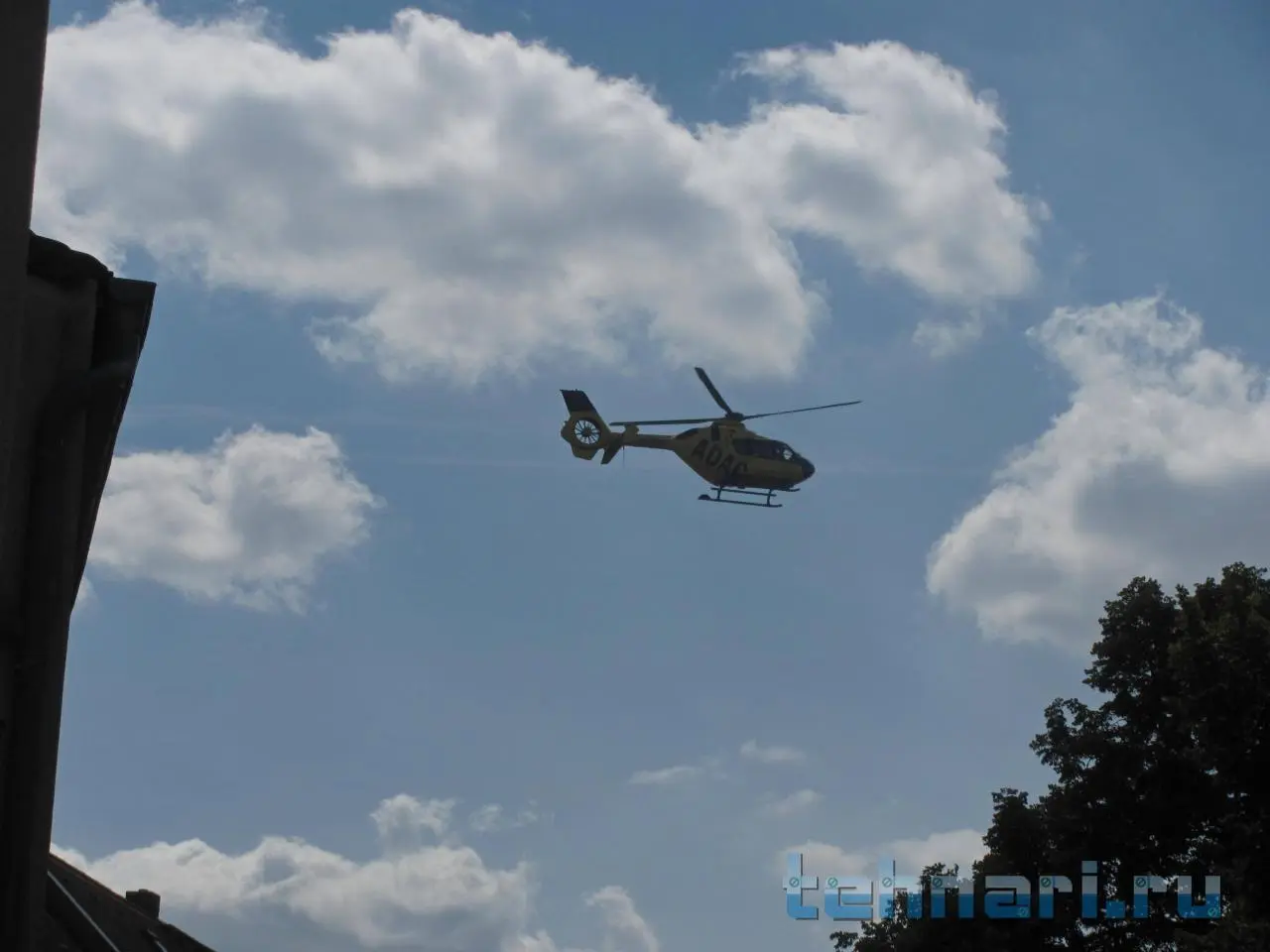 кого-то беда. На клумбы в парке прилетел и сел вертолет службы спасения, 50 метров от моего балкона.