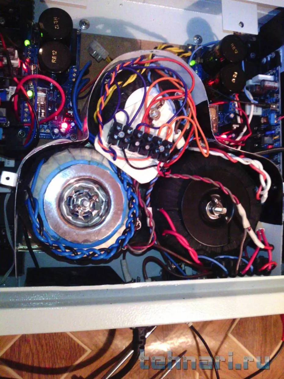Не вижу принципиальной разницы транс с выпрямителями внутри общего корпуса, где его запихивают в дальний угол, в экран и проч, что б уменьшить наводки на УМ или в 5см рядом в отдельном саркофаге...