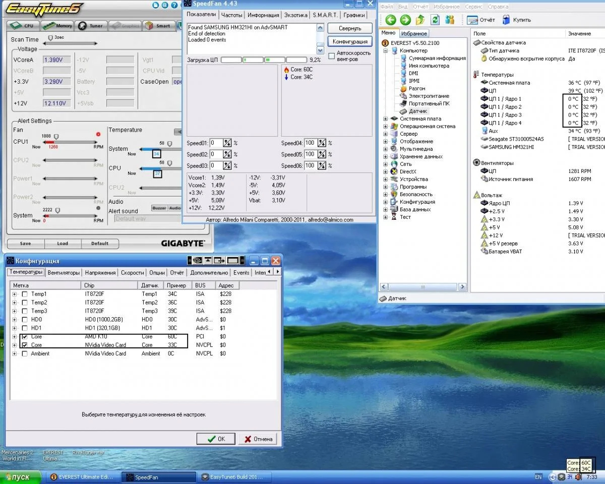 Датчики тут непричем. Смотри тепературу проца в БИОСе.