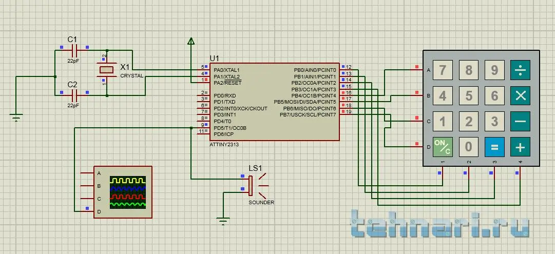 Задание на КР "Разработка устройства набора номера". Разработать устройство на МК, реализующее функции ввода номера с клавиатуры, отображения набранного номера, формирование тонального сигнала(как я понял DTMF). Начал делать, по методичке от Атмел AVR314