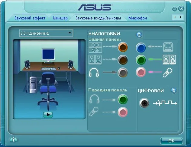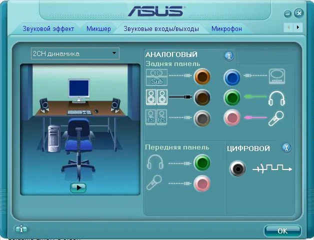 а каналы- посмотри сразу вверху над рисунком стола( у тебя поставлено 2 канала....) 2 динамика точнее...