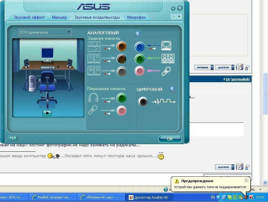 при включении в свои гнезда, не видит наушники, хотя звук есть