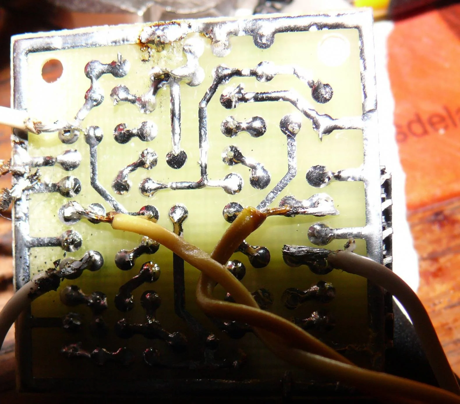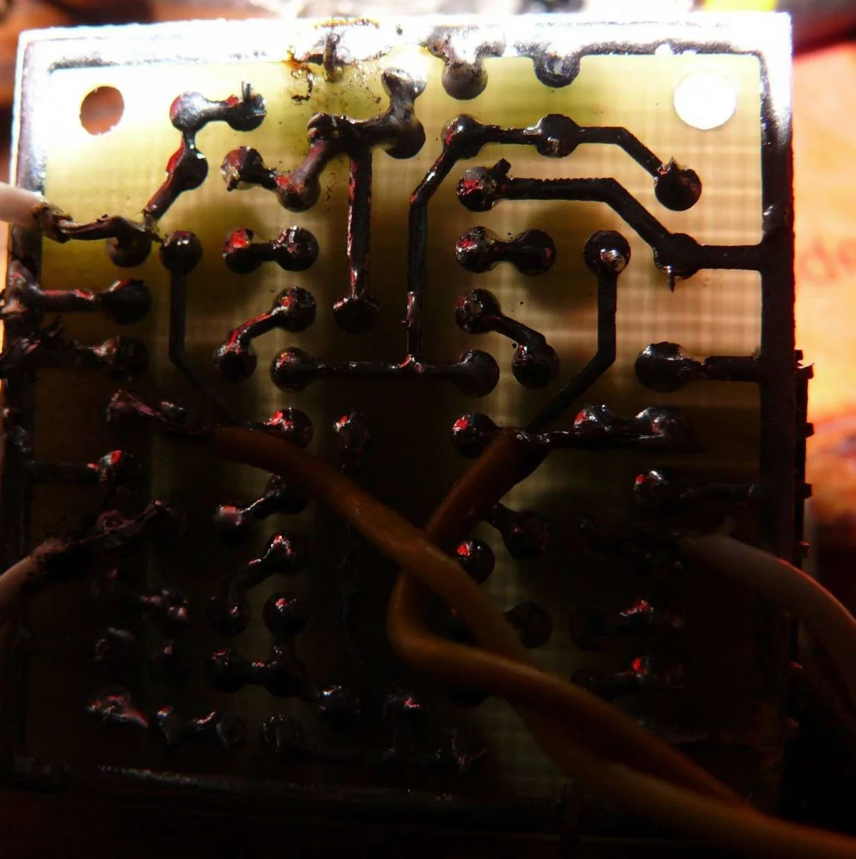 от стабилизатора на ЛМ 317, вот фото со стороны деталей кондёр чёрного цвета (уже поменяный, не тот что изначально стоял)