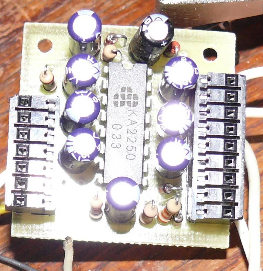 подскажите, есть регулятор электронный на ка2250, гонит переменку и один электролит греется, в динамиках сплошной гул, пробовал заменить конденсатор - без изменений, греется всё равно, схема покупная, продавалась готовым блоком