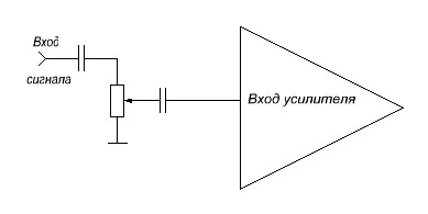 Переменный резистор, он же регулятор громкости, ставится на входе .