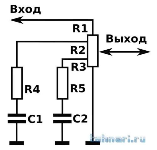 В высококачественных усилителях к потенциометру подключают дополнительные RC-цепочки частотной коррекции.