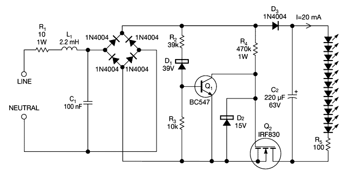 Я собирал подобную схемку... Драйвер для светодиодной лампы. Принцип действия схожий. Там полевик открытый пока уровень сетевого напряжения не достигнет например 30 В (в начале полупериода) и в этот момент происходит заряд конденсатора и лампа светится. Потом полевик закрывается и лампа работает на заряде конденсатора. Потом полевик в конце полупериода опять открывается и закроется в начале следуещего.