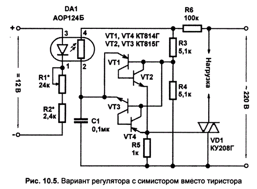 Небольшое уточнение:Это напрасно. Динистор и баланс сопротивлений дают не только открытие симистора в нужный момент полупериода, но и ограничивают ток управляющего электрода. Иначе можно попросту убить симистор.