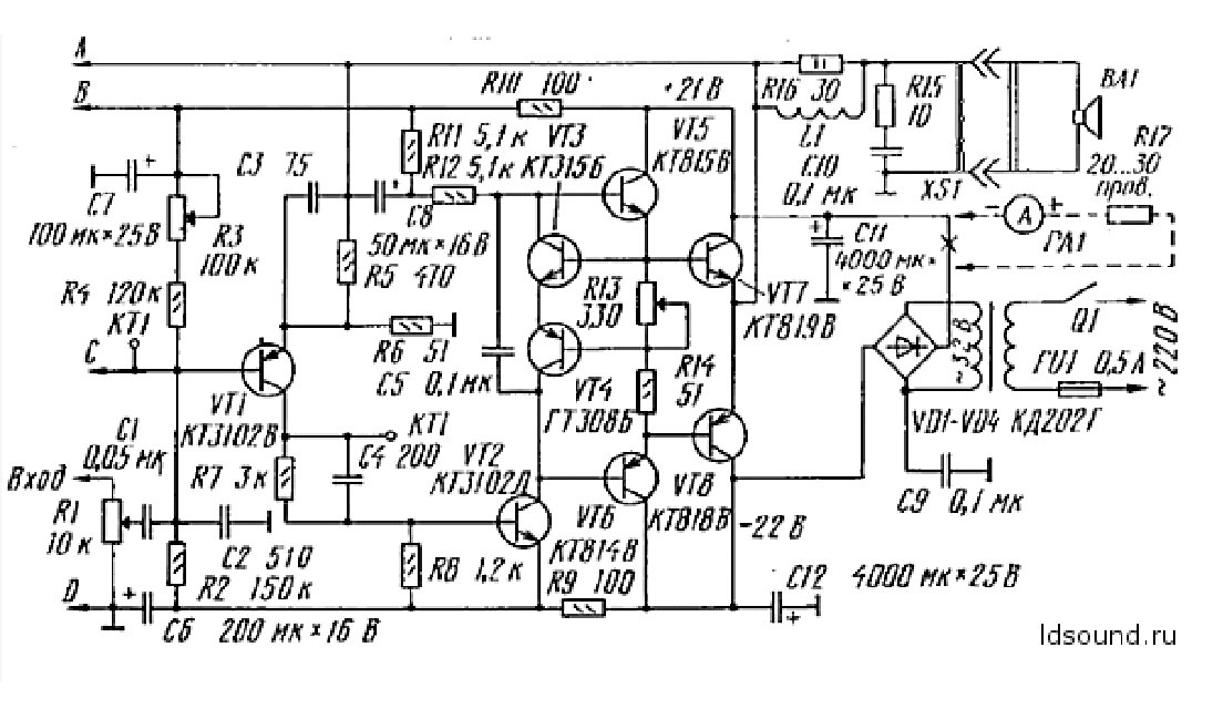 На один из нескольких вариантов точно есть, просто хотелось бы сохранить эволюцию доработок. Или Вам процесс не важен? Кстати в схему из поста 28 уже введена защита усилителя от перегрузки и КЗ (Араслановская).