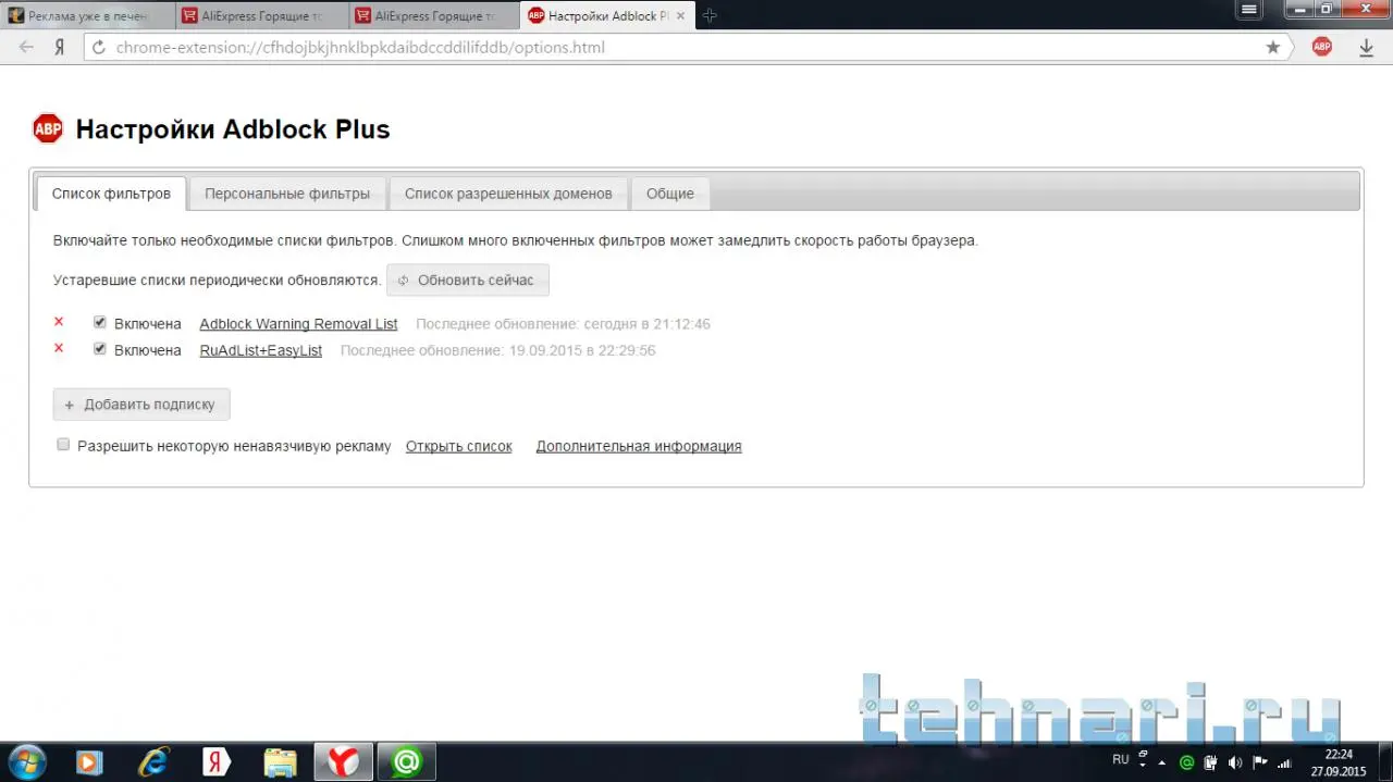 Странно, у меня менее жёсткие критерии блокировки, но всё равно рекламы нет.вот настройки