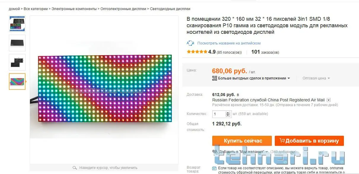 Я хочу собрать из них монитор 3х3 метра (меньше нет смысла), это 162 панели 320*160 мм.