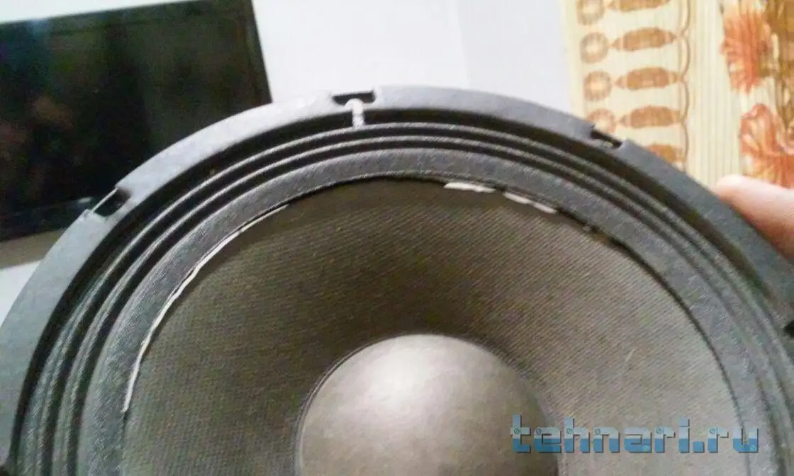 2/3 диффузора отклеились от подвеса, а остальная часть просто оторвана с частью диффузор.