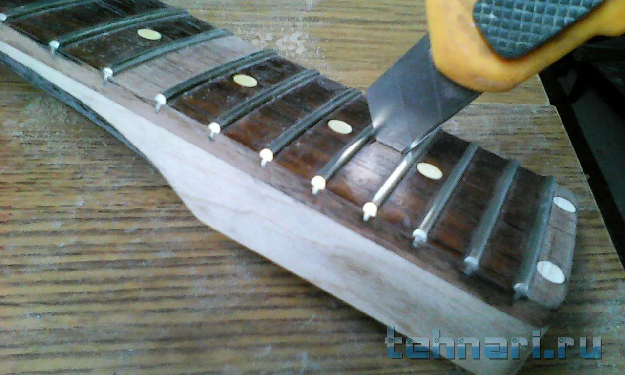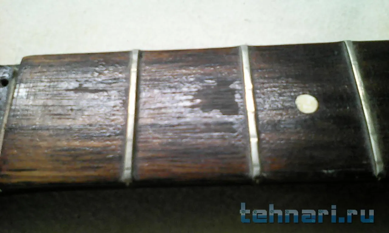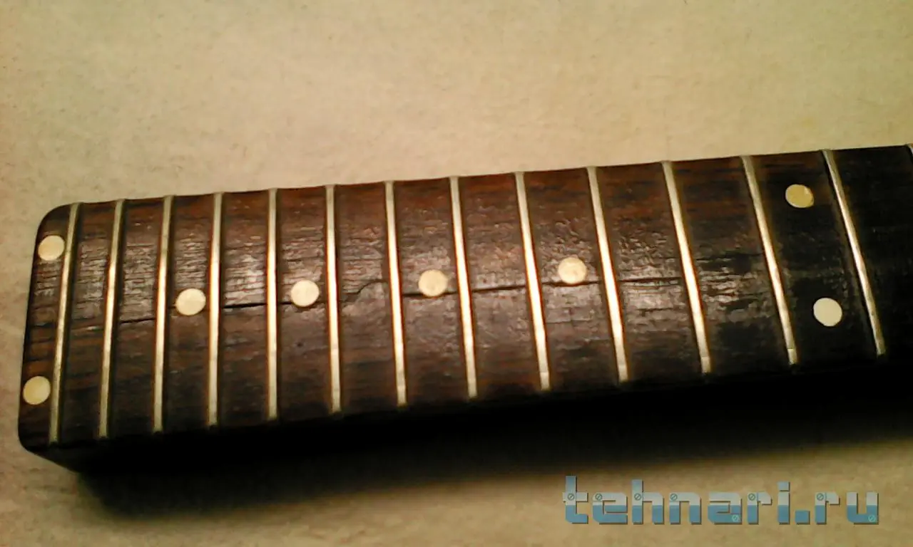 покажи подробнее это место, может чё нить полезное в голову придёт, какое это дерево?А вот у грифа в нижней части накладка лопнула вдоль канала регулировочного винта, и держится похоже только порожками. Может трещину эпоксидкой пролить, так чтоб в канал не просочилась?