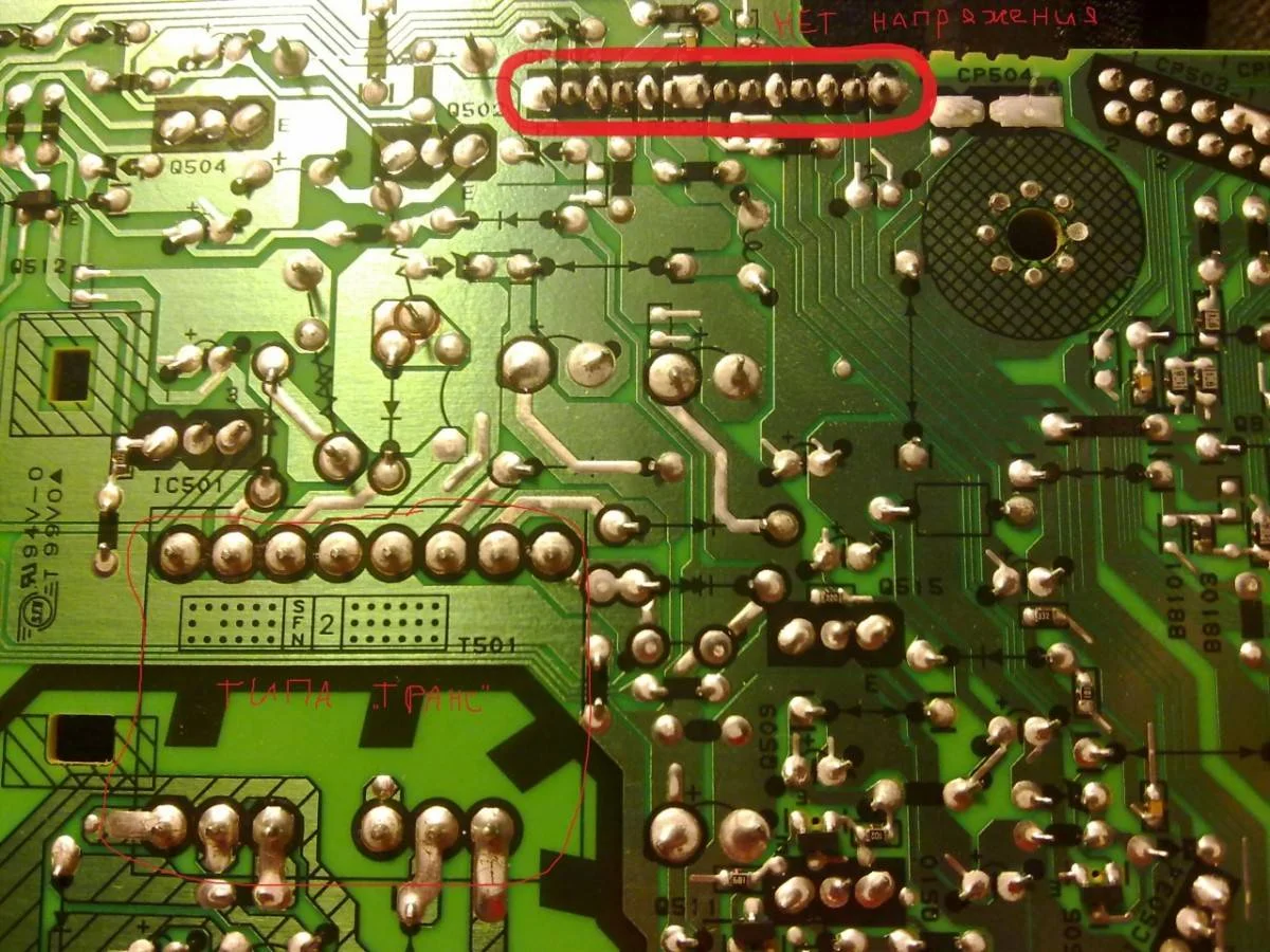 Мое подозрение сразу пало на блок питания, а именно на предохранитель, но он оказался целым... Начал прозвон с ~220, дошел до диодного моста, дальше по дорожкам прозвонил - все в норме. Далее стоит неизвестный мне компонент, напоминающий маленький транс... его тоже прозвонил, но на второй стороне напряжения не увидел... Потом сразу решил померить наличие напряжения на выводах, куда подходят провода... там напряжения нет ни на одном из выходов... промерил все... Что мне делать? Что и как проверять? В чем может быть причина?