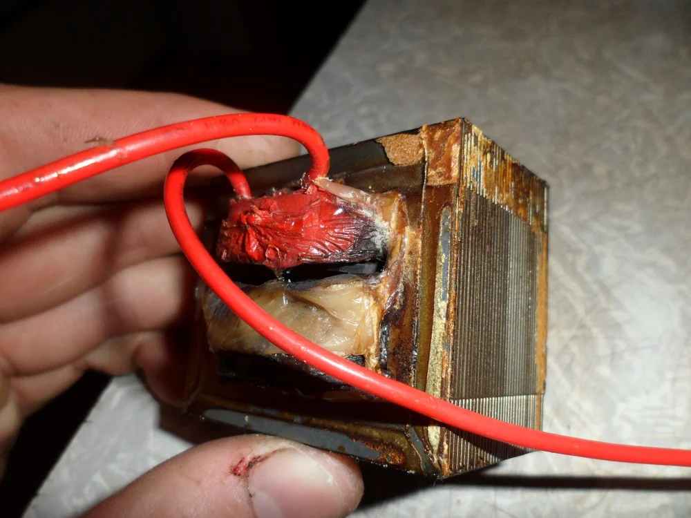 Здравствуйте!!! Как не будь можно восскресить этот транс??? Его таким нашел на мусоре, весь китайский усилитель в нутри был в таком состоянии как транс, что было с ним даже и не знаю..... Интересует только спасение транса, можете что небудь подсказать??? Он питал 4 tda2030 в однополярном, по китайским меркам выдовал 2 ампера и от 9 до 18 вольт на нем была наклейка.