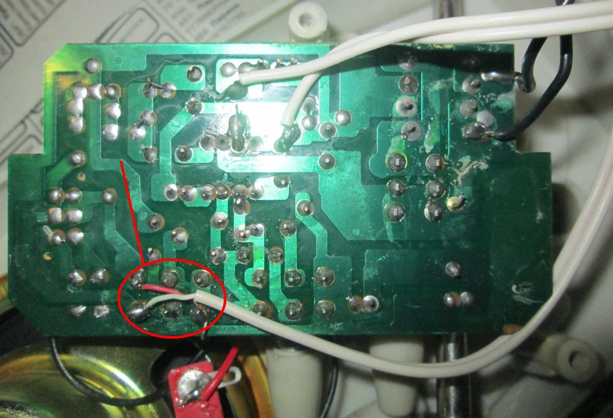 не делай как я нарисовал, от старого места отпаяй и припаяй к белому и красному кружку,соответствующий провод.