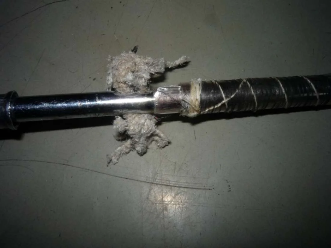 Хотя остаётся ещё один вариант - кто-то ещё до Вас примотал концы шнура к армирующей обмотке. Ничего, естественно, не получилось, и паяльник был выброшен.
