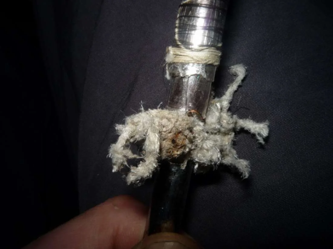 Недавно нашел вот такой паяльник. Он разобран, торчат какие-то 2 проводка в белой тряпичной оплетке.