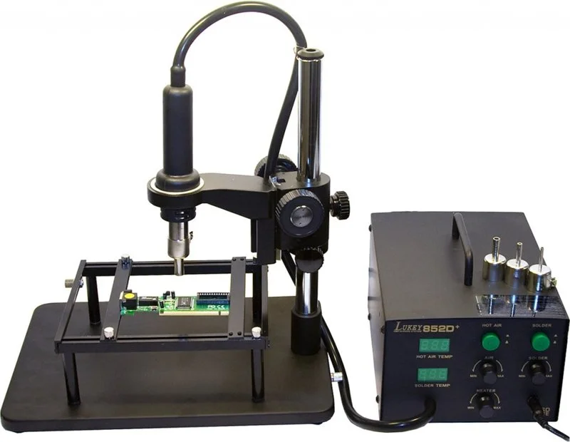1) Самый правильный способ заключается в использовании паяльной станции. Ими в основном пользуются в сервисных центрах. Там можно точно контролировать температуру и воздушный поток. Вот так они выглядят: