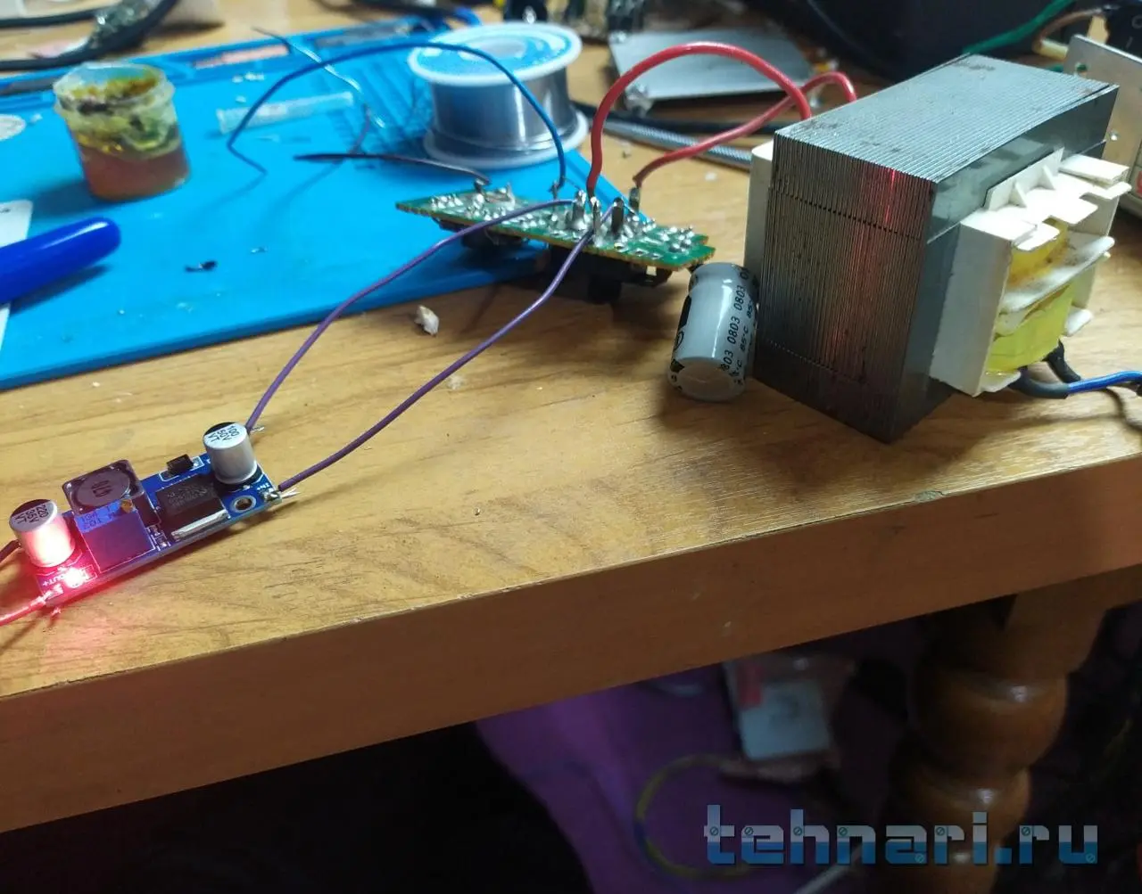 Все кто говорили, что транс от зарядки шуруповерта не пойдет, можете потирать руки. Он всего чуть больше 100 милиампер выдает. Этого хватает только на то, чтобы на мафоне световая индикация заработала и всё.