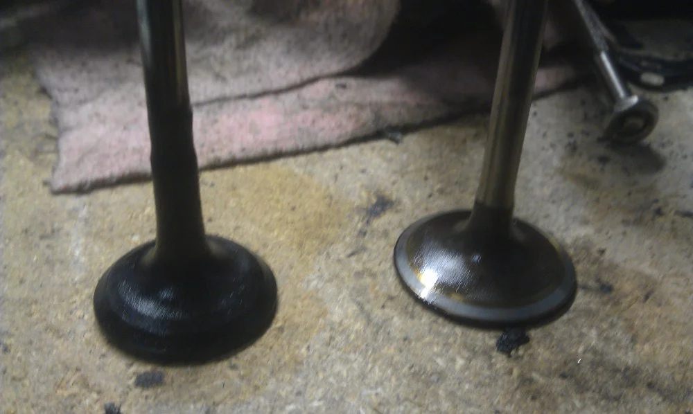 Отогнал на мойку ,промыли.Пока доехал домой из под 1 и 4 цилиндра опять подтёки под головкой.Решено менять прокладку,масло,фильтр.Заменил.Мотор поработал с полчасика.Загорелась лампочка давления масла.Достаю шуп масла.На масле белый осадок.Слил немного масла.Смотрю и вправду масло как будто с молоком перемешали.Делать нечего решил снять голову глянуть что там случилось.Ничего особеннго не увидел.Промазал всё герметиком ,как и в первый раз и опять всё собрал.Но тут дёрнул меня чорт снять коромысла,зачем сам до сих пор понять не могу.Снял покрутил и назад поставил,кланапа не регулировал.Собрал завожу двигатель трясёт.Думал ремень перескочил.Разобрал выставил всё по меткам.Собрал.Один хрен трисёт и после того как газанёшь когда обороты падают слышно металлический звонкий стук.Сегодня ещё решил проверить компрессию.