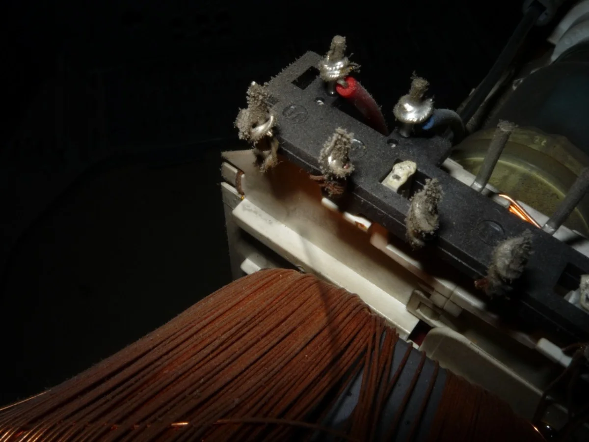 Вернее при включении в сеть, красная лампа загорается; при включении канала на экране пробегивают белые квадратики(примерно 5х5), характерный вч свист и все.