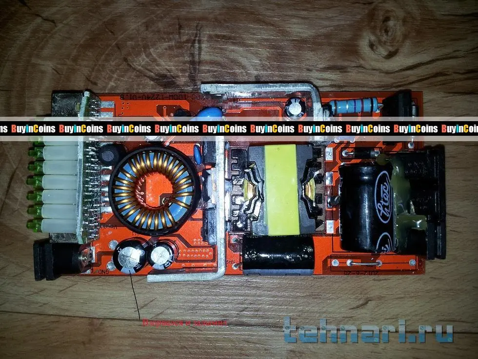 Плата внутри почти вот такая. Отдаёт горелым запахом от большой штуки по середине, хотя может ошибаюсь.