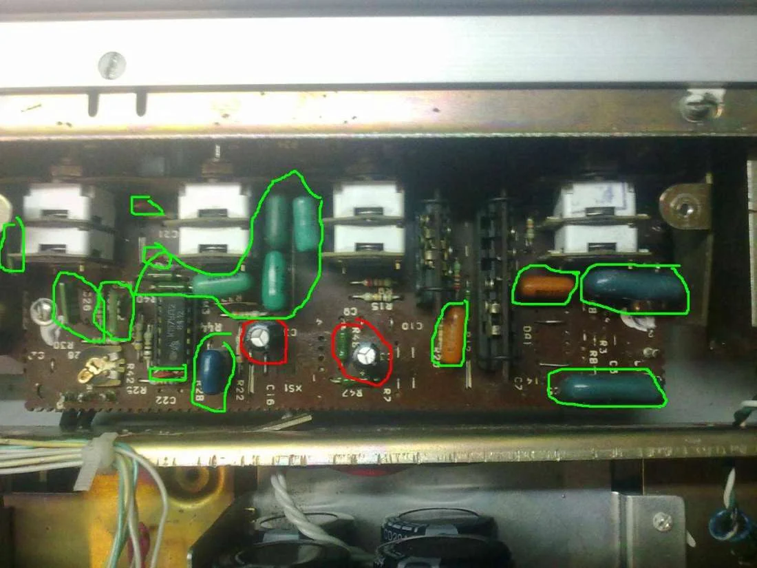 красное полярные , салатовое - неполярные. схема переделаная с 3х микросхемного преда на 2х микросхемный. Это всё вы найдёте выше, я выкладывал всю свою инфу.