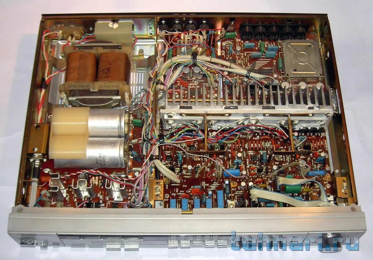 Как Вы себе представляете отключение блоков в этом усилителе? У человека, не знакомого с радиоэлектроникой, вид его внутренностей вызовет культурный шок. Не говоря уж о том, что в некоторых случаях выдергивание шлейфов может привести к повреждению аппарата. Как, например, в Электронике 50У-017С, где обратная связь с выхода усилителя подается на инвертирующий вход дифкаскада через разъем с длинным проводом, с платы реле