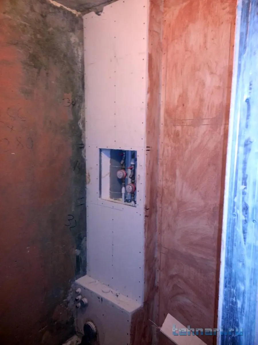 За своё качество, я отвечаю ), но вот, субподрядчики подвели, самые первые сантехники, которые меняли стояки. За стояком канализации, на обратке, два трёхчетвертных крана - полотенцесушитель, по осям расстояние между ними 51 см, а должно быть 50. Придётся вкрутить эксцентрики и из-за этого увеличивается ширина короба.