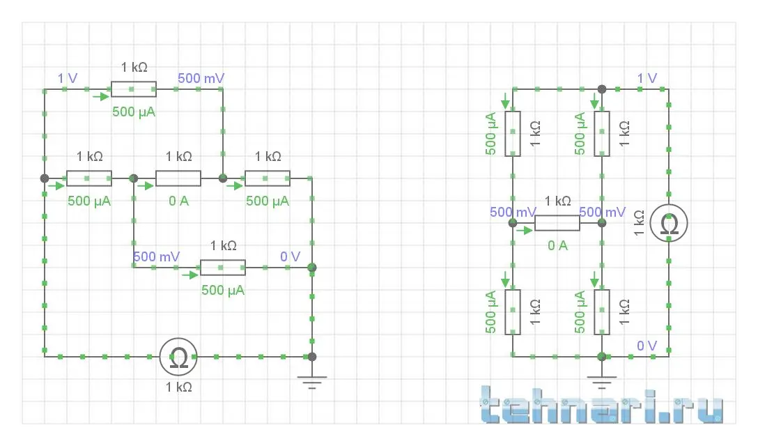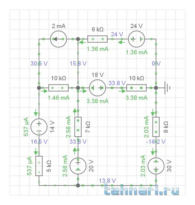 Теперь осталась только одна проблема - генератор тока. Из Физики мы знаем, что генератор (источник) тока - это источник ЭДС с бесконечно большим напряжением и бесконечно большим внутренним сопротивлением. На языке математики ток I6 выглядит как отношение двух пределов, стремящихся к бесконечности: lim(E6) / lim(R6) = 2 мА. Правим схему, пишем для этого контура по второму правилу Кирхгофа уравнение, собираем всё в систему, проверяем, считаем. Только вот одна проблемка - лично я не помню математического аппарата для работы с пределами, хотя, в Высшей математике он имеется и он непростой. Так зачем мне все эти сложности, когда есть более простой путь?
