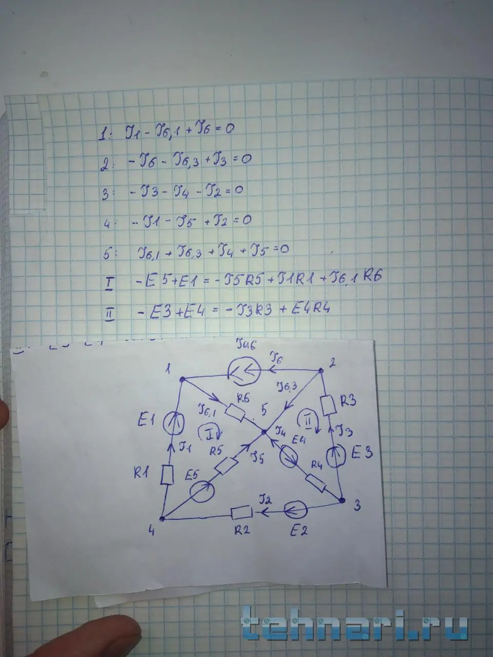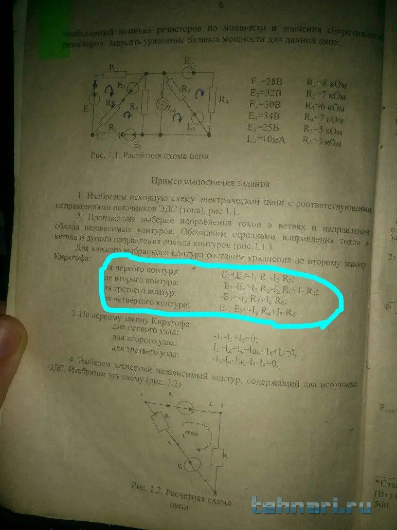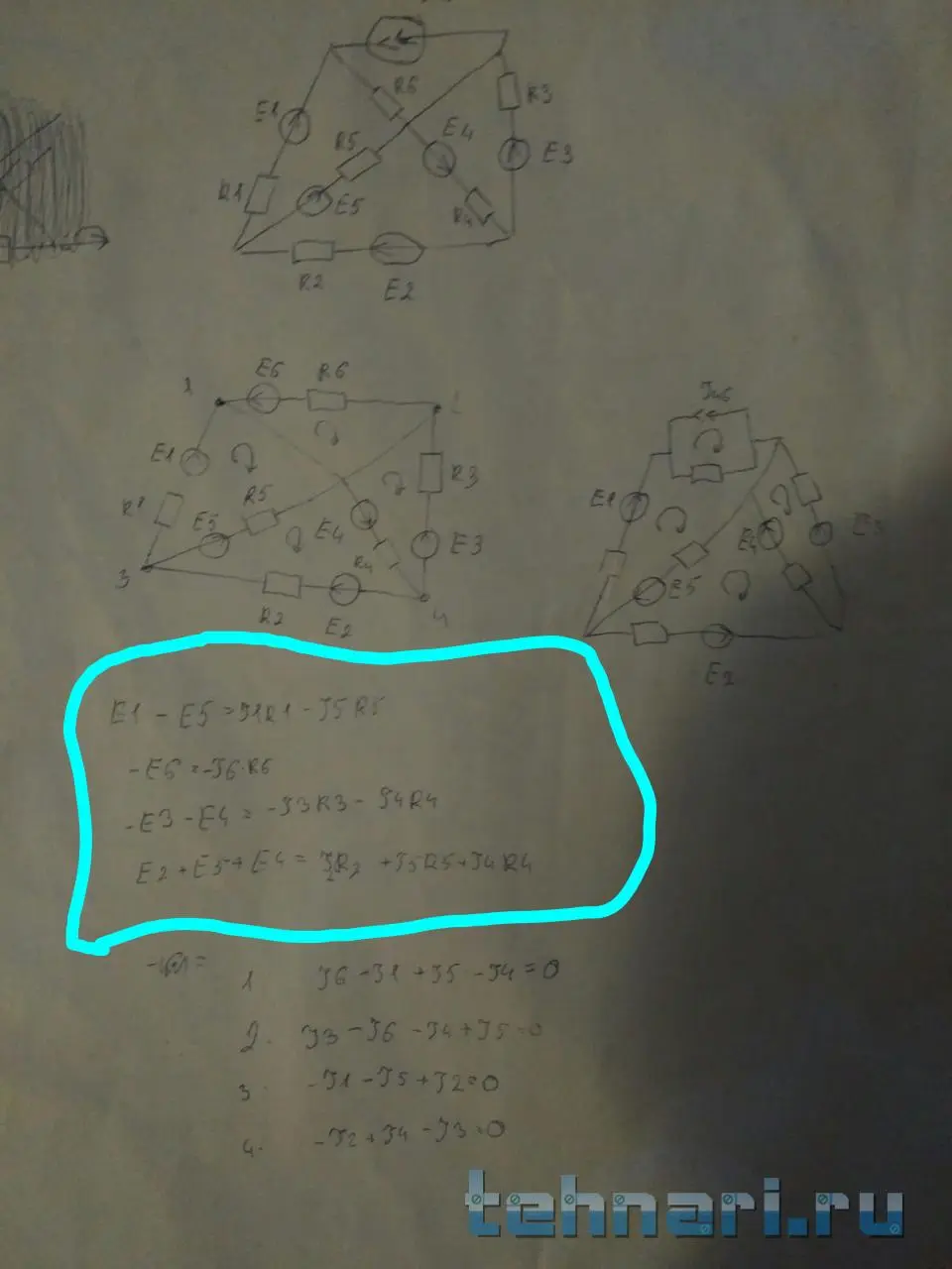 Но преподаватель будет требовать уравнения для второго закона Кирхгофа для каждого контура.