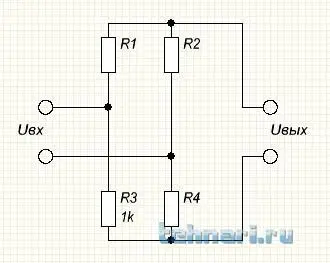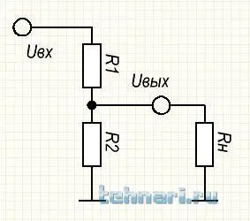 Я вот в одной книжке читал што есть такая вещь как делитель напряжения (как на рисунке). По книжке написано што выходное напряжение зависит от входного по формуле
