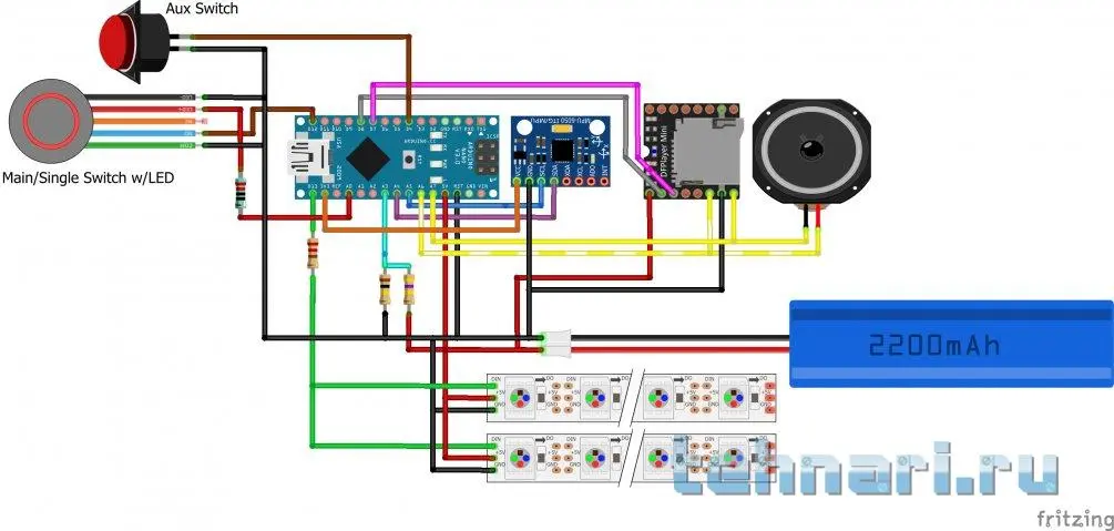 Питание от 2х 18650 батарей. к ардуинке к 5в/gnd и к батарее +/-.