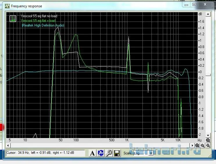 Интересно поведение зубчика на 2.5 кГц. При отключенном эквалайзере это хорошо, что подрезает эту частоту, но почему торчать начинает при включенном эквалайзере?