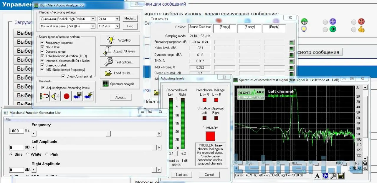 На данный момент я собрал переходник для микрофонного входа, вроде подружил карту саму с собой. Не совсем понятен момент stereo crosstalk, это взаимопроникновение каналов, я правильно понимаю? На графике приложенном видимо что то не так?