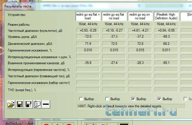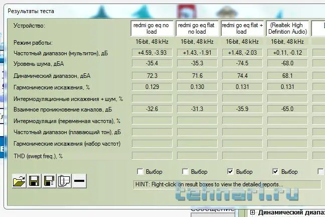 Еще есть уточнение к этим замерам и к замерам Redmi Go. RMAA в режиме 16 бит, 44 кГц упорно не хотела отрисовывать графики АЧХ с нагрузкой. Поэтому выбран режим 48 кГц.