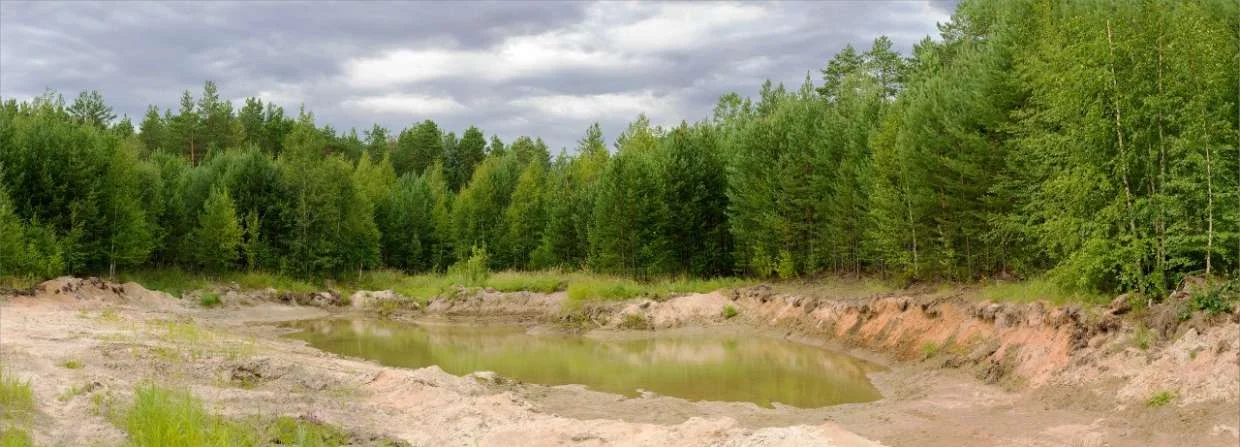 ходил за грибами, нашел тот участок леса что горел месяц назад, ещё нашёл озерцо
