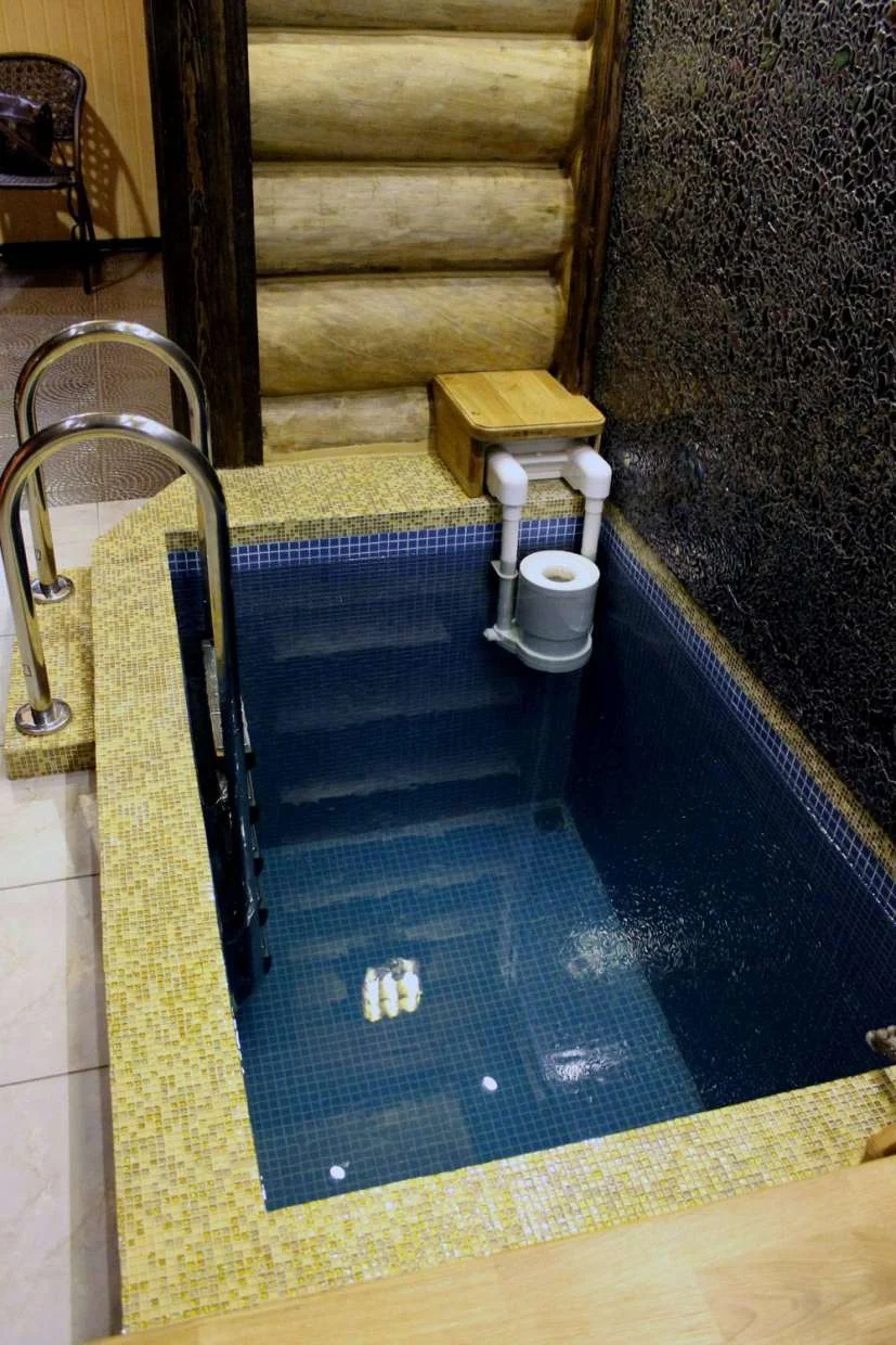 ...после которой так приятно прыгнуть в бассейн с холодной водой!