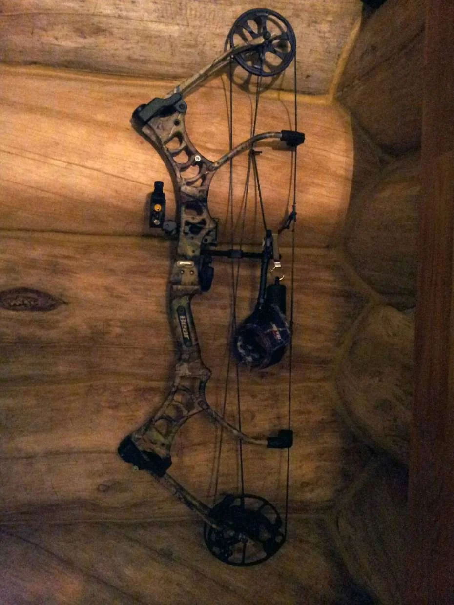 Это блочный лук. У него есть интересное свойство - после натяжения не надо прикладывать большого усилия для удержания тетивы.
