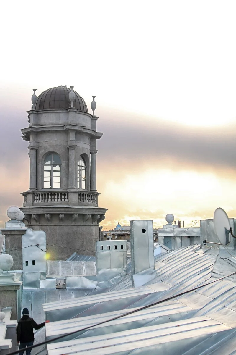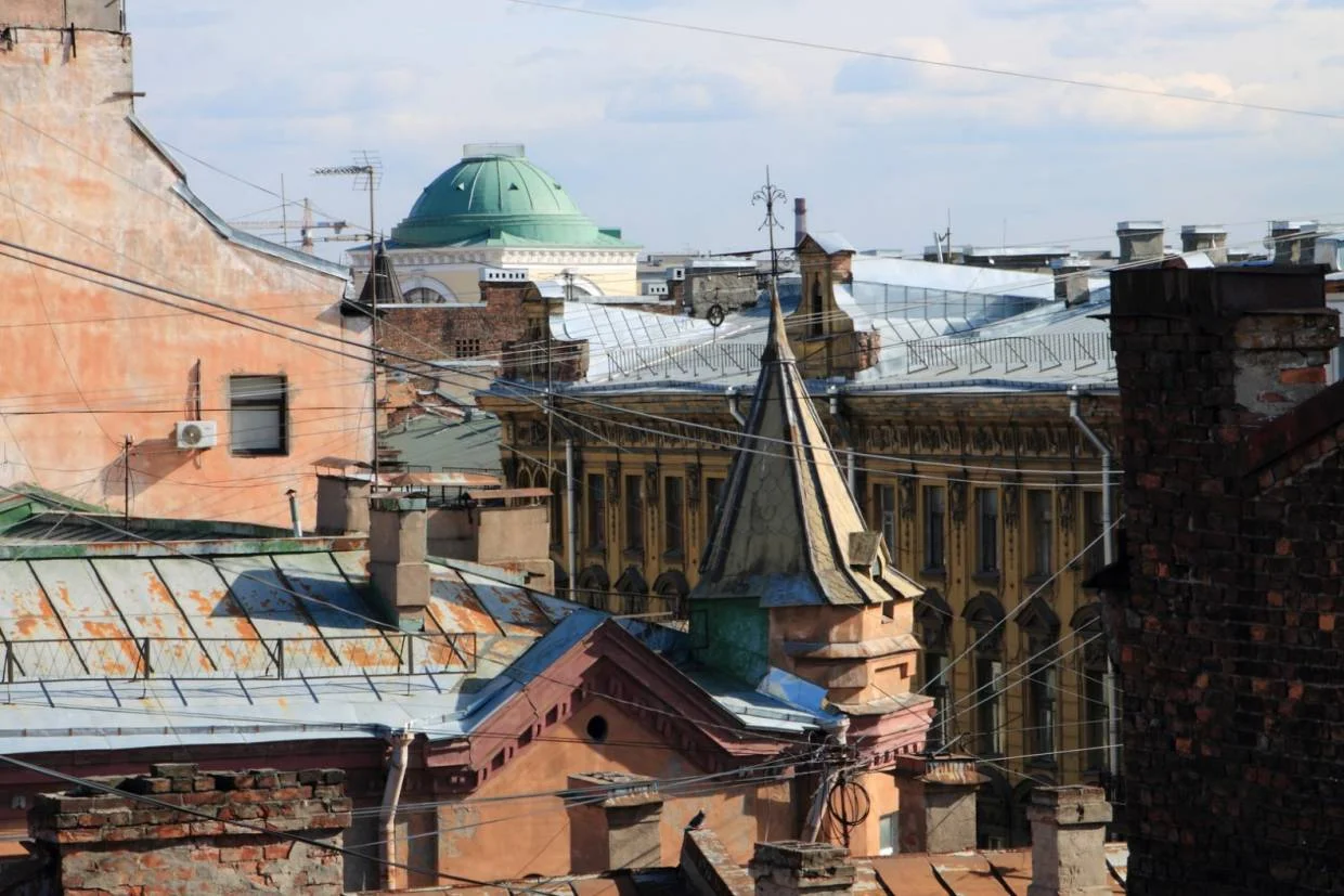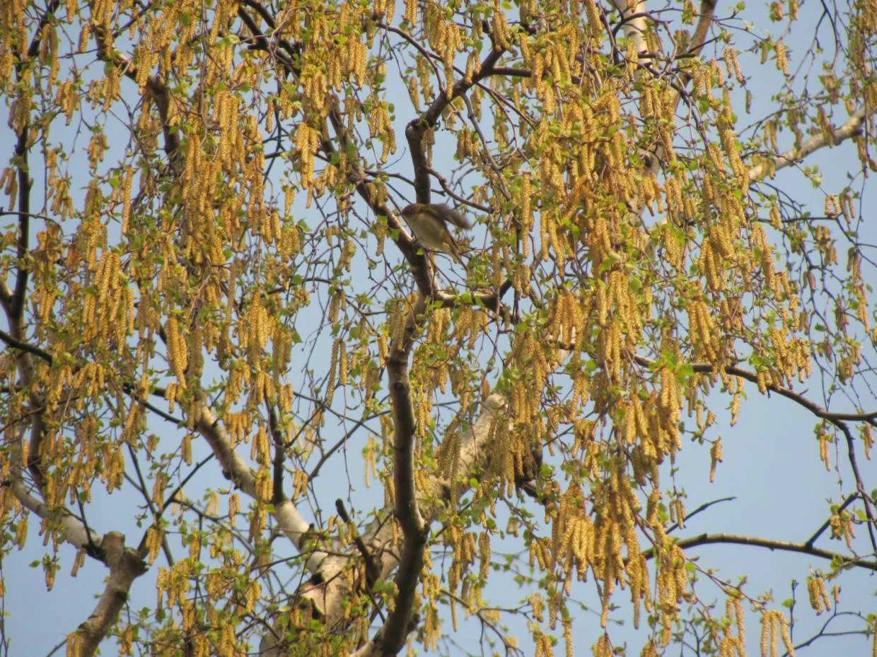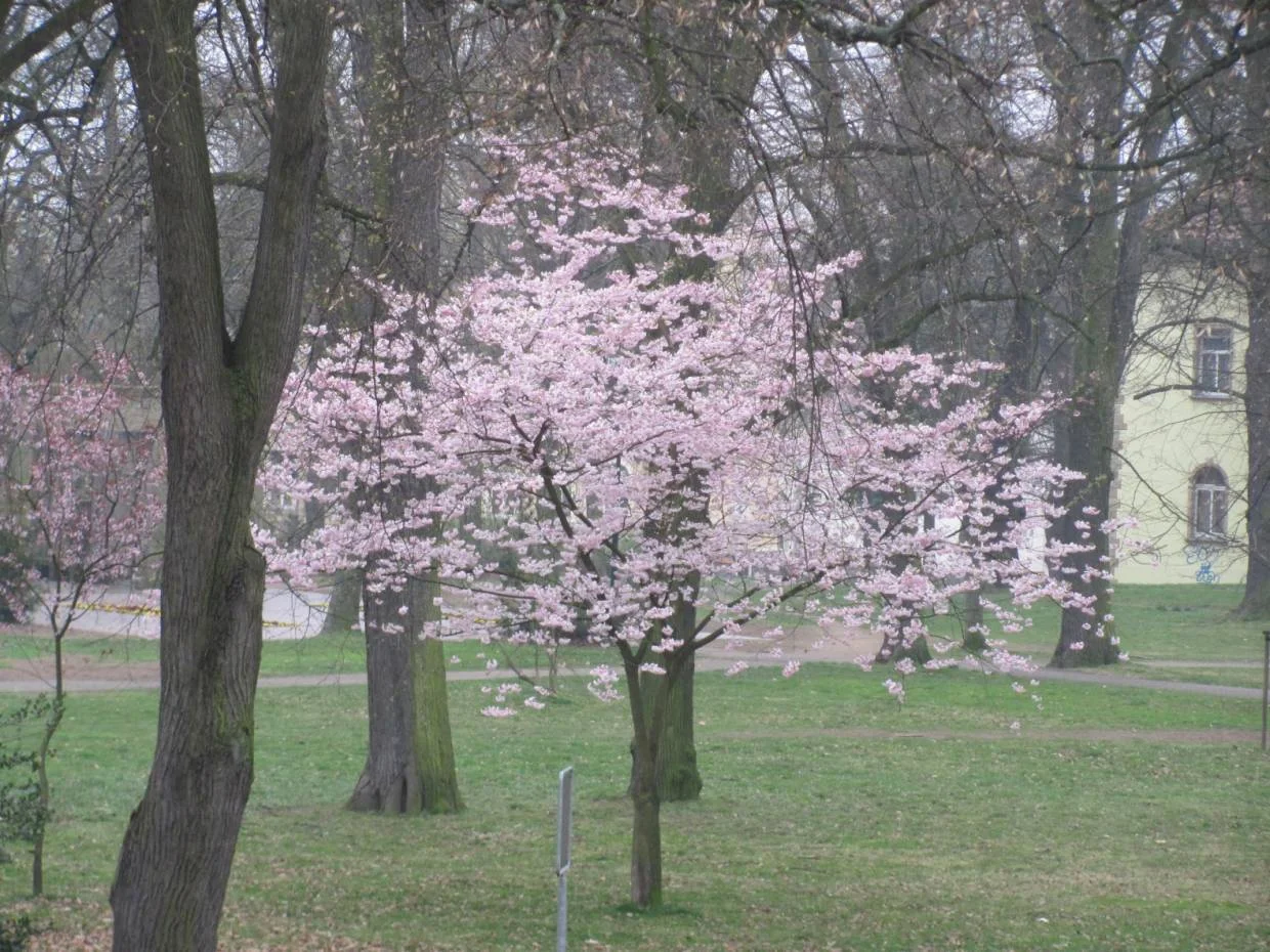 Уже несколько дней пасмурных, + 14 + 17 град. И опять с балкона: странно видеть среди голых еще деревьев - вдруг распустилась японская вишня.!