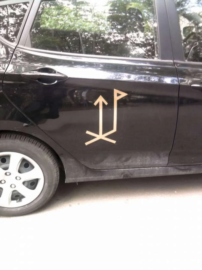У нас во дворе паркуется машинка, и на ней есть вот такой символ. Что он может означать?
