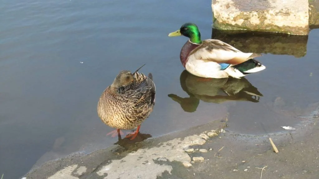 В Мурманск прилетели уточки. :) Сейчас ходил встречать жену с работы, на обратном пути наткнулись на презабавнейшую парочку: