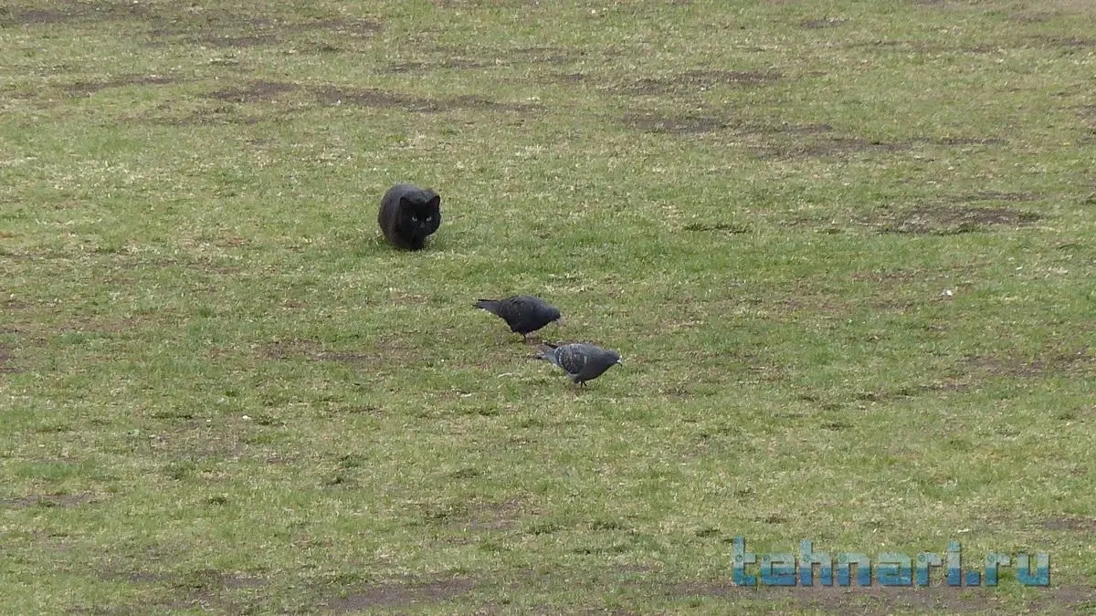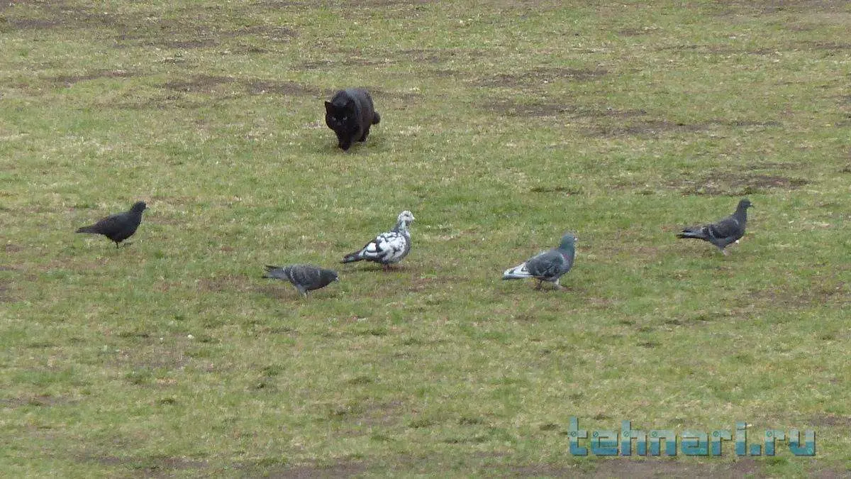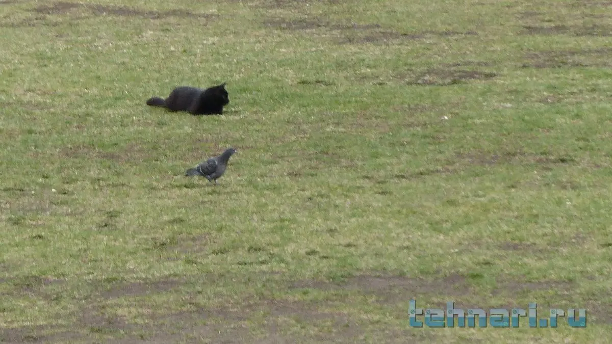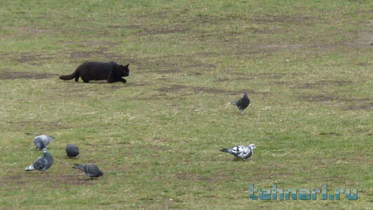 Снял сегодня, кот охотится за стаей голубей, заклюют нафиг.